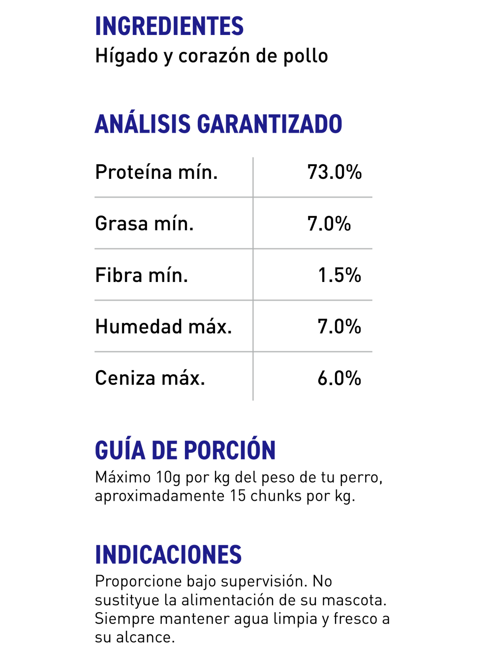 Premios liofilizados hechos solo con hígado de res. Son piezas grandes: perfectas para cuando necesitas toda su atención. Dáselas completas como “super recompensa” o pártelas en pedacitos para que te rindan en entrenamiento, paseo o momentos con muchas distracciones (visitas, vet, baño, etc).